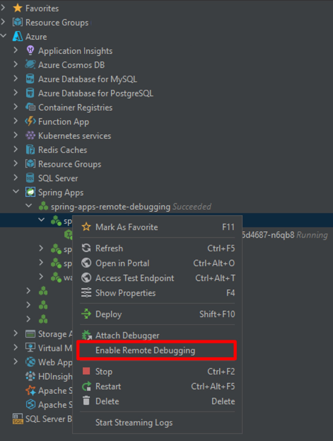 Questa sezione descrive come eseguire il debug di un'istanza di app in modalità remota usando Azure Toolkit for IntelliJ.
