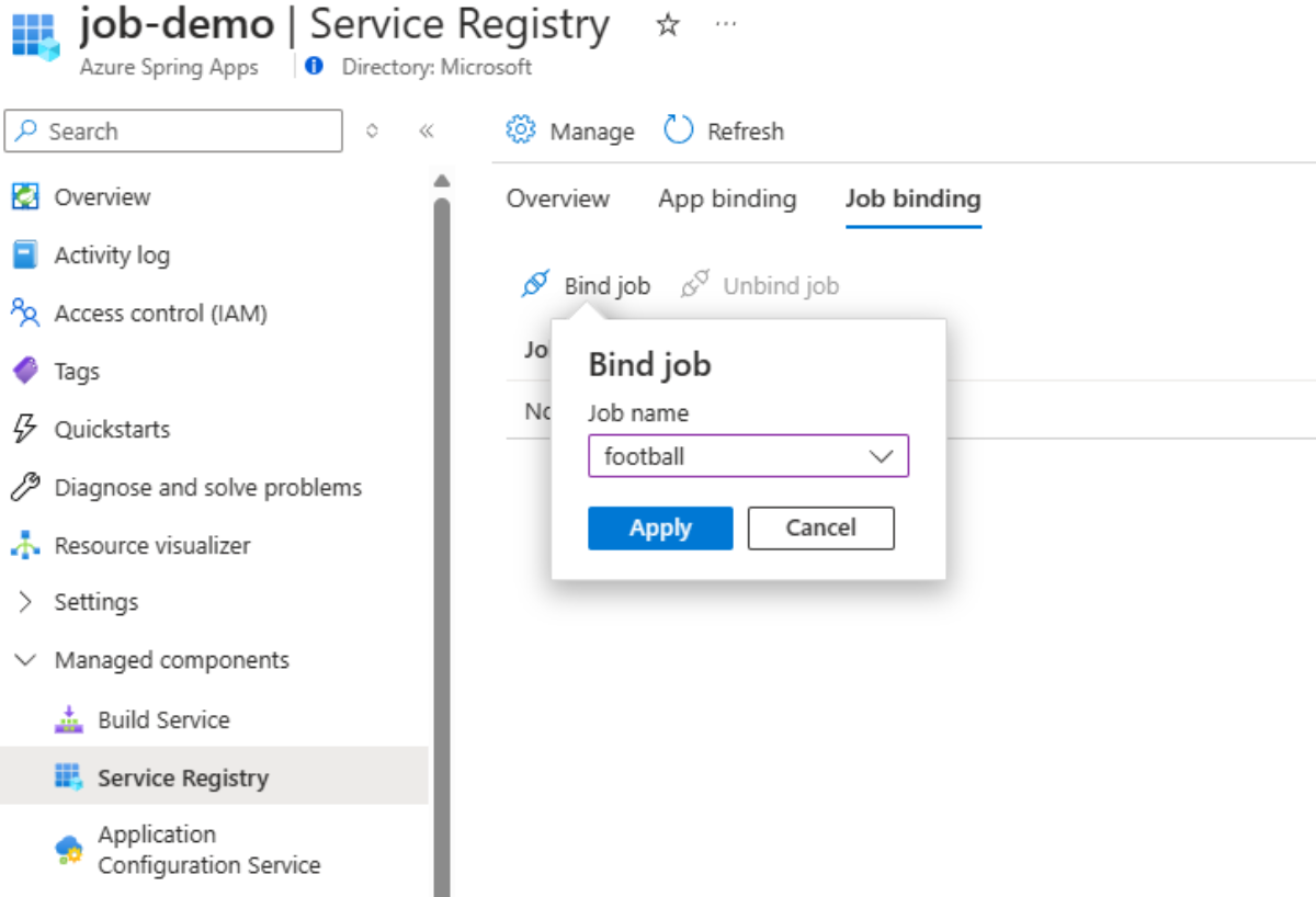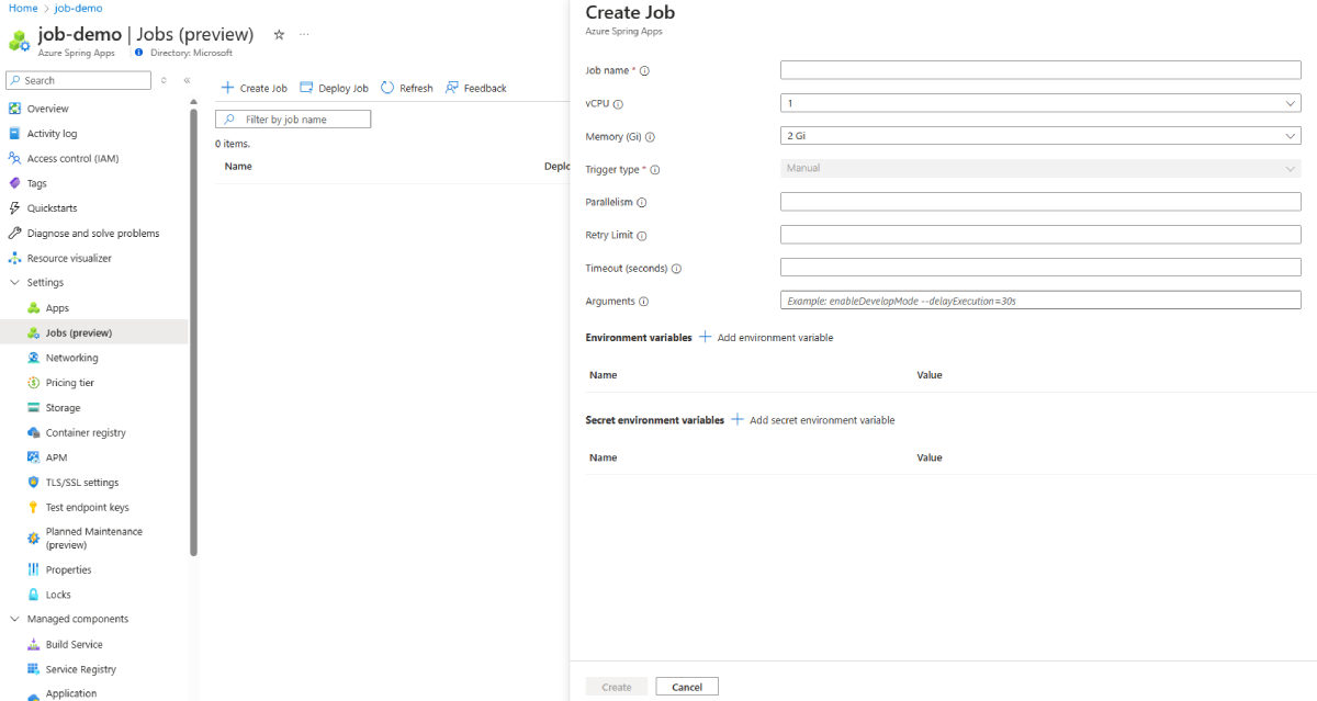 $ az spring job deploy -s job-demo -g job-demo -n football --artifact-path target/spring-batch-football-0.0.1-SNAPSHOT-jar-with-dependencies.jar --build-env BP_JVM_VERSION=17