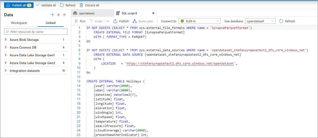 La tabella esterna viene ora creata. È ora possibile eseguire query sulla tabella esterna direttamente dal riquadro Dati.