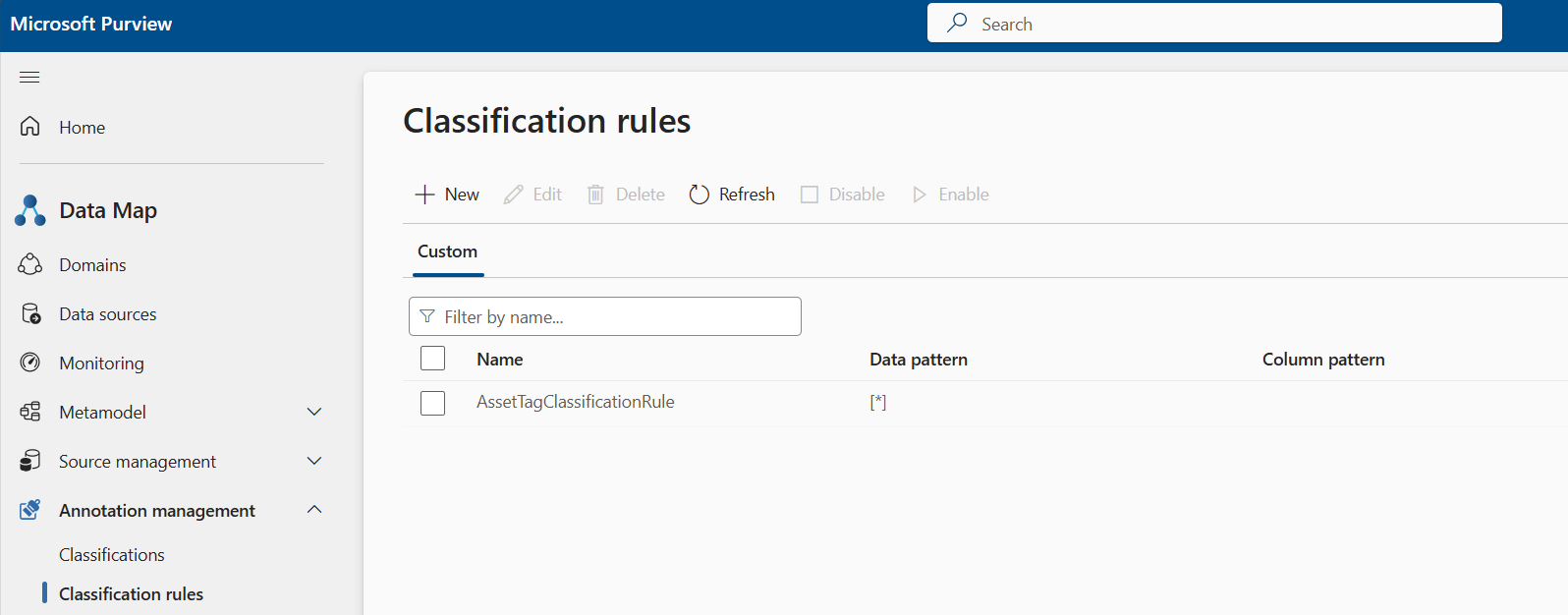 È possibile assegnare automaticamente le classificazioni a livello di asset o colonna includendo le classificazioni pertinenti nella regola di analisi oppure assegnarle manualmente dopo aver inserito i metadati nella Microsoft Purview Data Map.