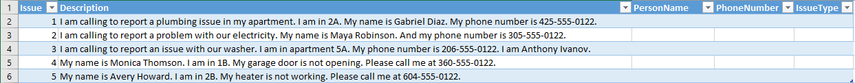 - Foglio di calcolo contenente i problemi dell’inquilino. I dati di esempio per questa esercitazione sono disponibili in GitHub.
