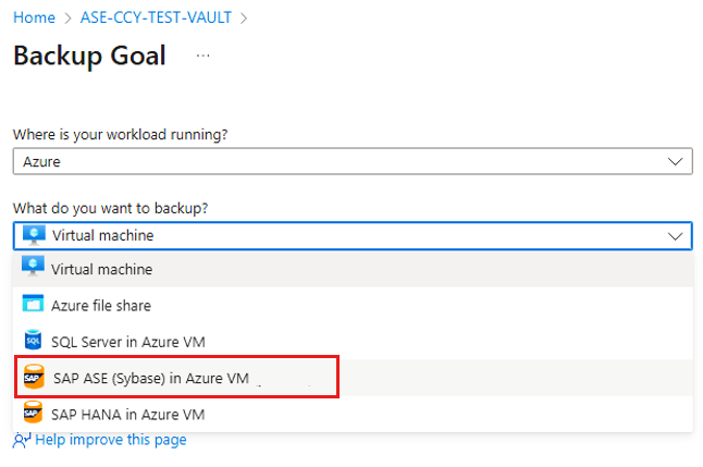 Questo articolo descrive come configurare il backup per i database SAP Adaptive Server Enterprise (Sybase) (in esecuzione in macchine virtuali di Azure) usando il portale di Azure.
