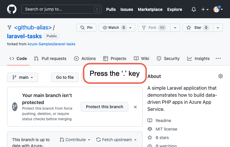 2. Accedere a https://github.com/Azure-Samples/laravel-tasks.