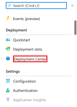 Nel menu a sinistra della pagina del servizio app selezionare Configurazione. Screenshot che mostra come aprire la pagina di configurazione nel servizio app.