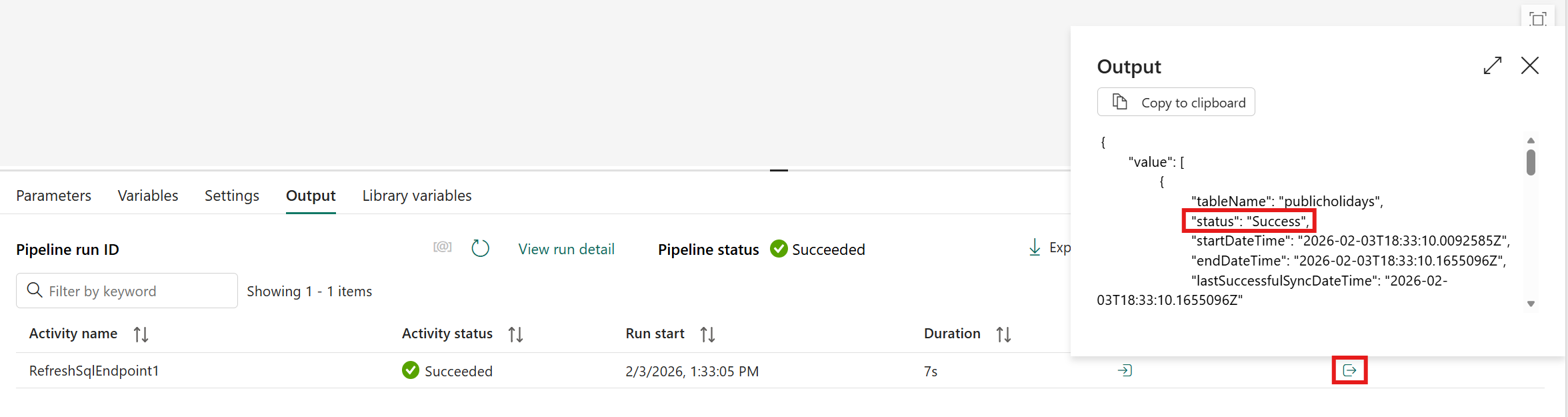 L'attività Aggiorna endpoint SQL nelle pipeline di Microsoft Fabric consente di aggiornare a livello di codice un endpoint SQL lakehouse come parte di un flusso di lavoro orchestrato. Questo approccio garantisce che i consumer downstream, ad esempio report di Power BI, notebook o client SQL esterni, visualizzino i dati più recenti al termine dei passaggi di preparazione o manutenzione dei dati.