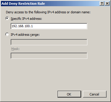 Immettere l'indirizzo IP che si desidera consentire o negare e quindi fare clic su OK.