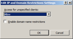 Scegliere il comportamento di accesso predefinito per i client non specificati, specificare se abilitare le restrizioni in base al nome di dominio e quindi fare clic su OK.