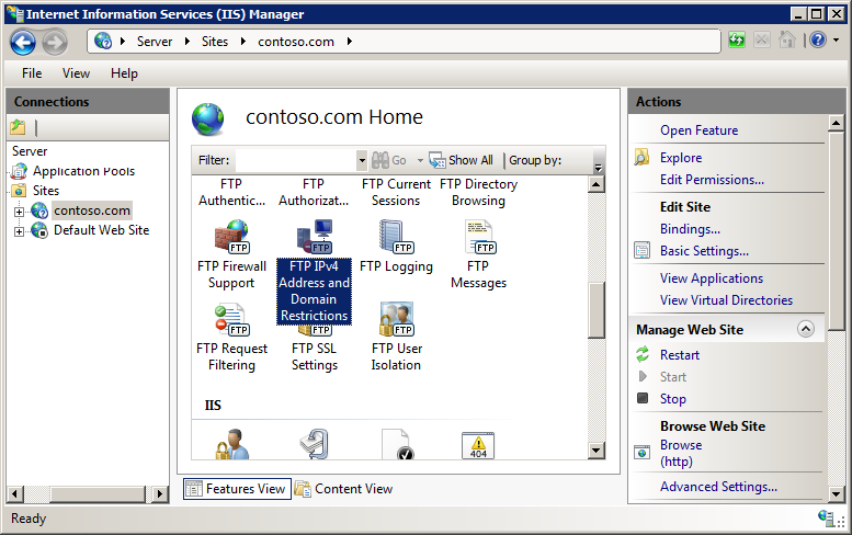 Nel riquadro Home fare doppio clic sulla funzionalità Indirizzi IPv4 FTP e Restrizioni di dominio .