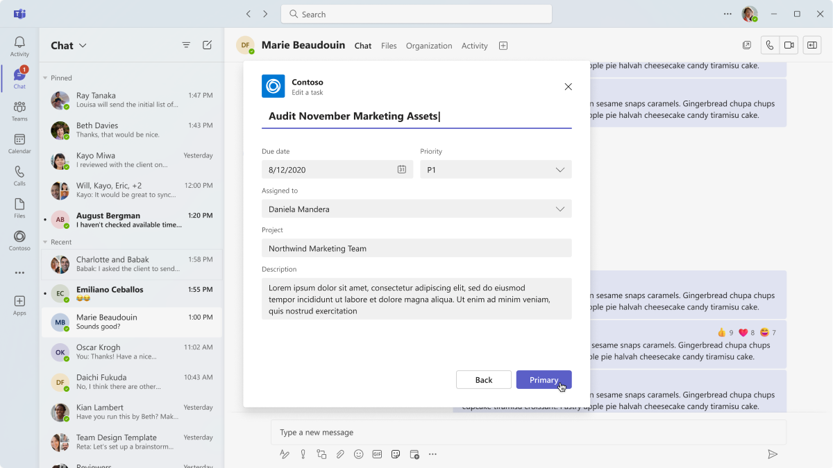 You can create modal pop-up experiences in your Teams app with dialogs (referred as task modules in TeamsJS v1.x). Use this capability to display rich media and information or complete a complex task.