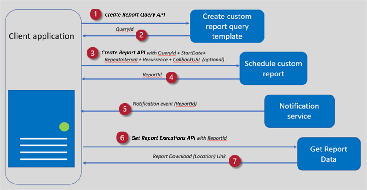 ReportID. - L'applicazione client riceve una notifica all'URI di callback non appena i dati del report sono pronti per il download.