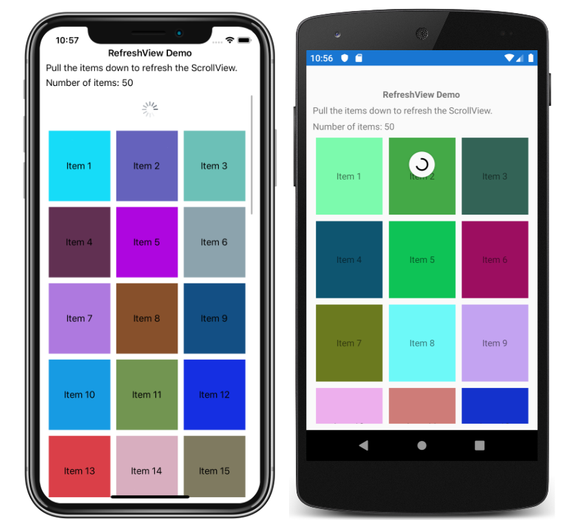 RefreshView è un controllo contenitore che fornisce funzionalità pull per l'aggiornamento per il contenuto scorrevole. Pertanto, l'elemento figlio di un RefreshView oggetto deve essere un controllo scorrevole, ad esempio ScrollView, CollectionViewo ListView.