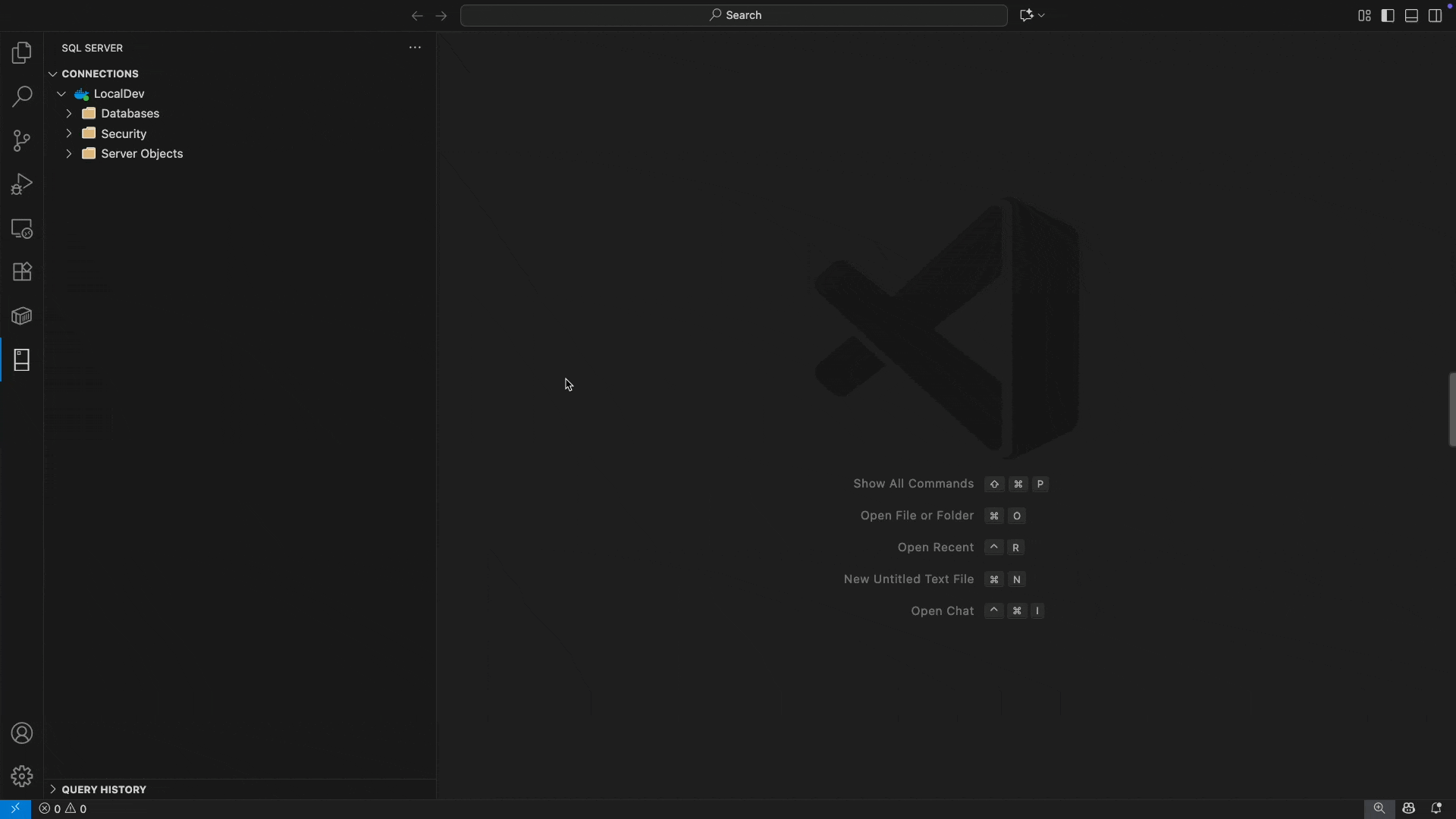 - L'estensione MSSQL apre la finestra di dialogo di connessione standard.