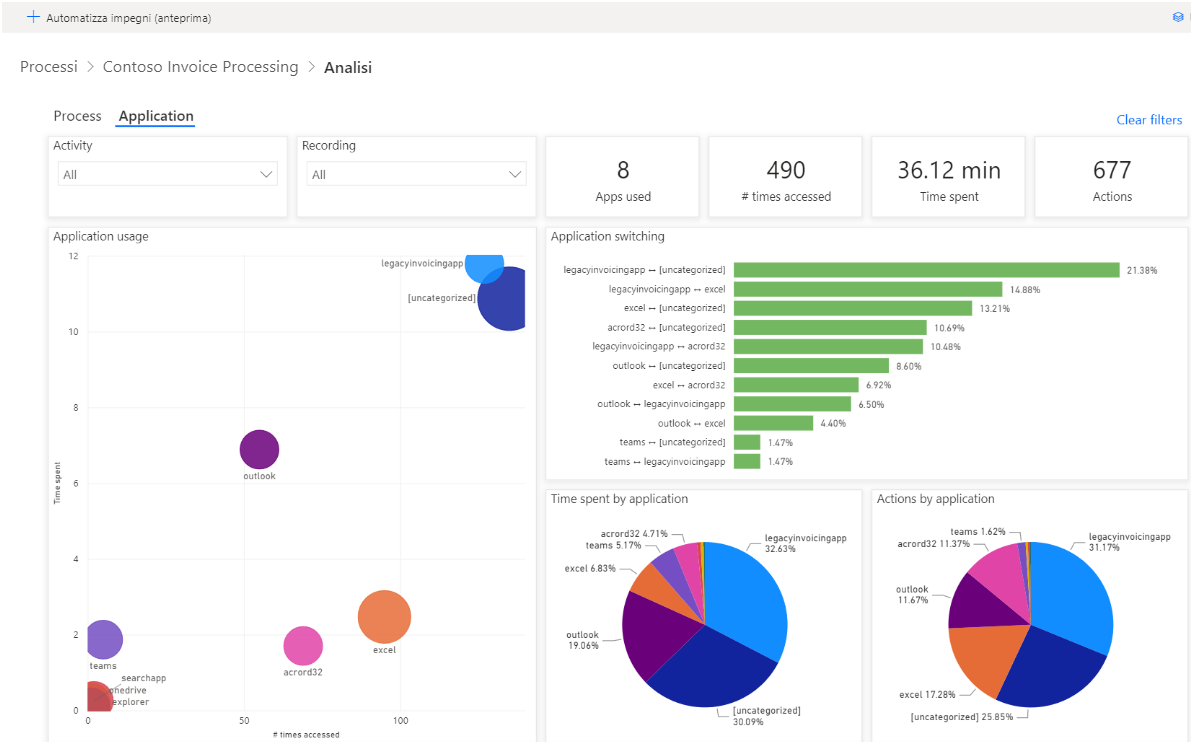 Oltre alle informazioni sul processo, è possibile trovare le analisi sulle varie applicazioni usate nel processo nella vista Analisi del report di riepilogo.