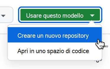 Selezionare Usa questo elenco a discesa modello e scegliere Crea un nuovo repository dal menu.