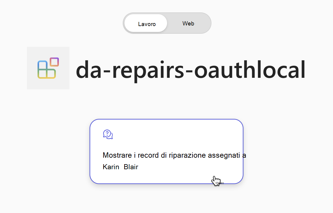Quando richiesto, accedere all'API per continuare a usare lo stesso account usato per accedere al tenant di Microsoft 365, selezionando Accedi a da-repairs-oauthlocal.