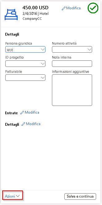 Dopo aver immesso le informazioni necessarie, nel riquadro in basso a sinistra, selezionare Azioni > Dettagli.