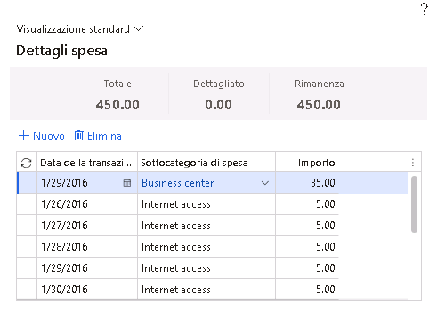 Dettagli delle spese per riga