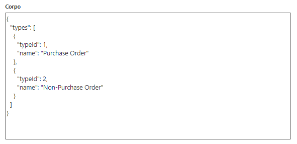 L'API usata deve fornire un'operazione che restituisca una matrice di valori validi e, facoltativamente, le relative descrizioni. A supporto dell'esempio precedente per ID del tipo di fattura, l'API ha fornito un'operazione ListInvoiceTypes che ha restituito i dati seguenti.