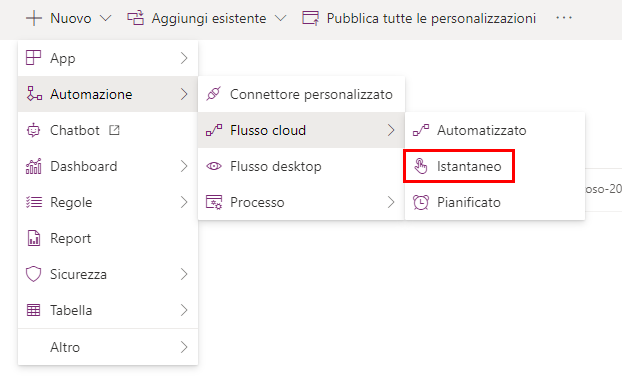Selezionare + Nuovo, quindi Automazione > Flusso cloud > Istantaneo.