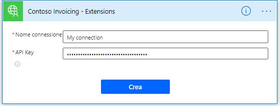 Incollare la chiave copiata nel campo Chiave API e quindi selezionare Crea connessione.