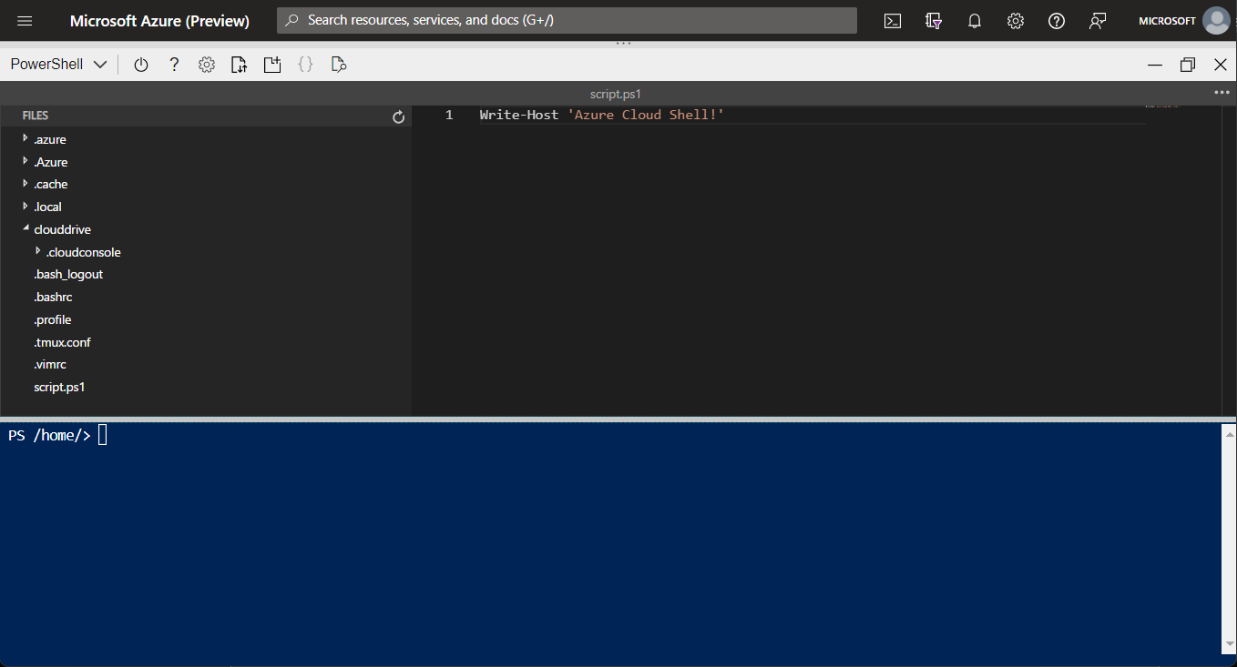 Quando si usa Cloud Shell, può anche essere necessario eseguire script o usare file per azioni diverse. È possibile salvare in modo permanente i file in Cloud Shell usando Azure CloudDrive: