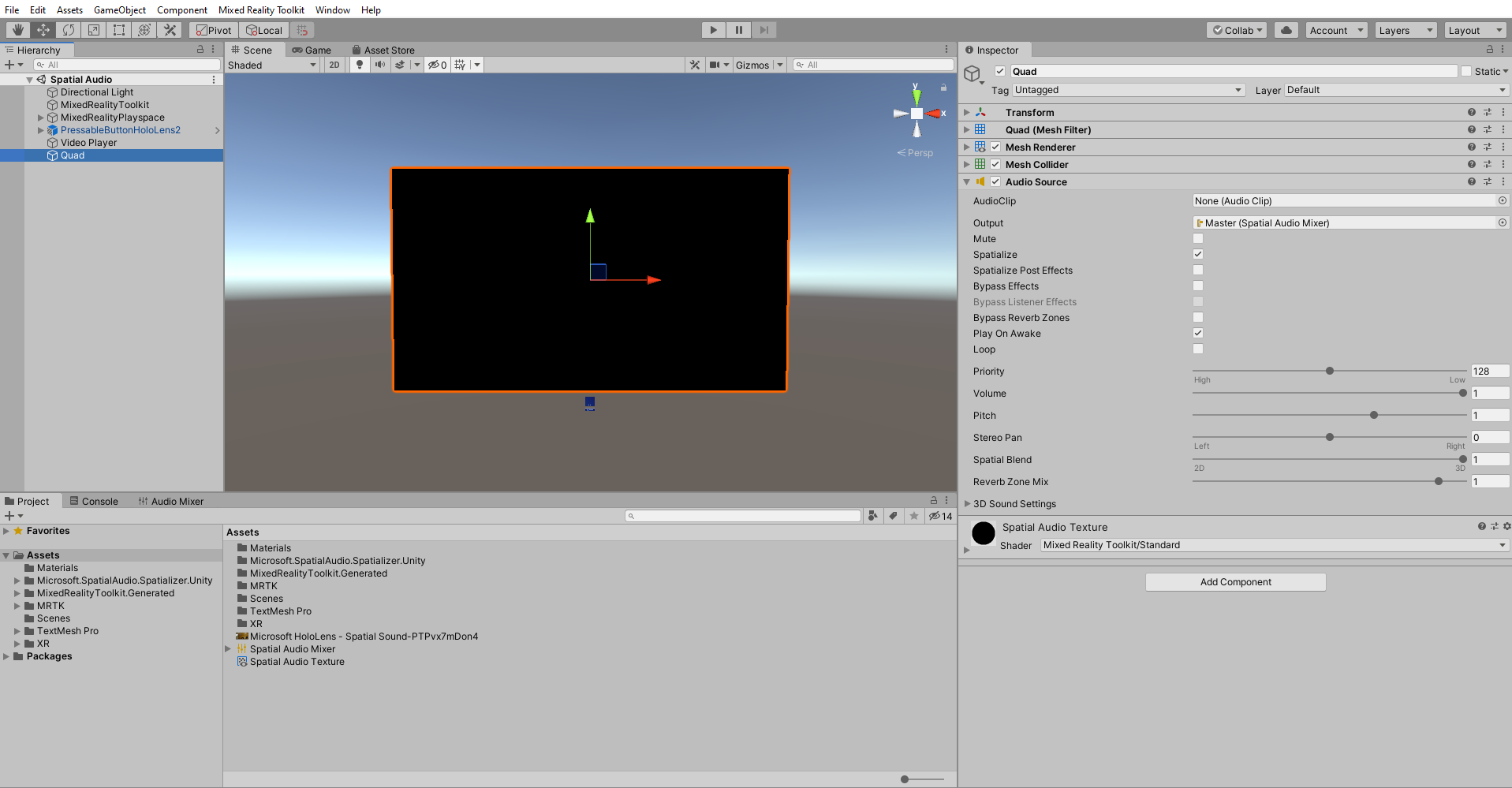 - Impostare la proprietà Video Clip sul file video scaricato: Microsoft HoloLens - Spatial Sound-PTPvx7mDon4.