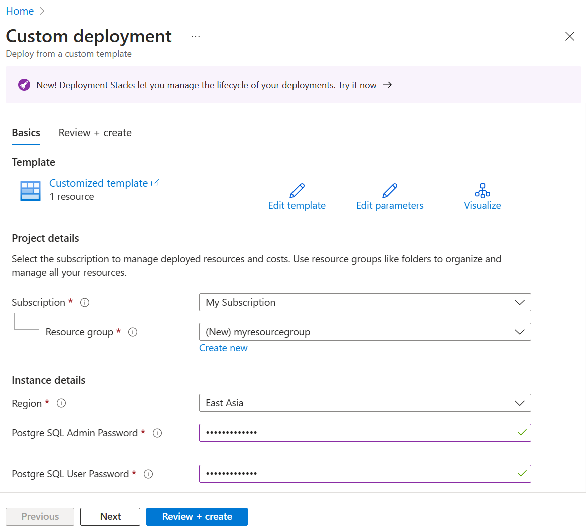 このサンプルを実行するために必要な主なリソースは、Azure Spring Apps インスタンスと Azure Database for PostgreSQL インスタンスです。 このセクションでは、これらのリソースを作成する手順を示します。