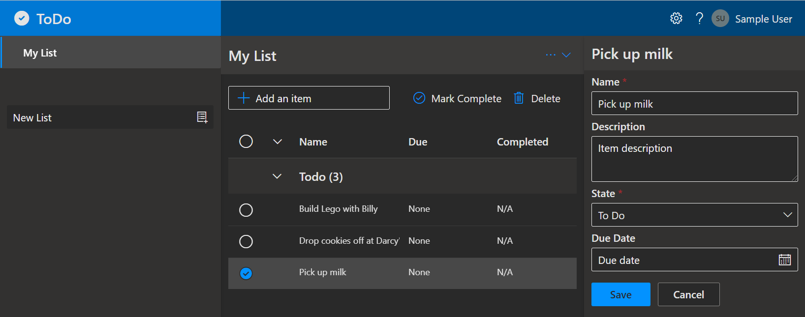 このクイックスタートでは、Spring Boot Web アプリケーションを Azure Spring Apps にデプロイする方法について説明します。 サンプル プロジェクトは、タスクを追加し、完了時にマークを付けてから、削除する単純な ToDo アプリケーションです。 このアプリケーションを次のスクリーンショットに示します。