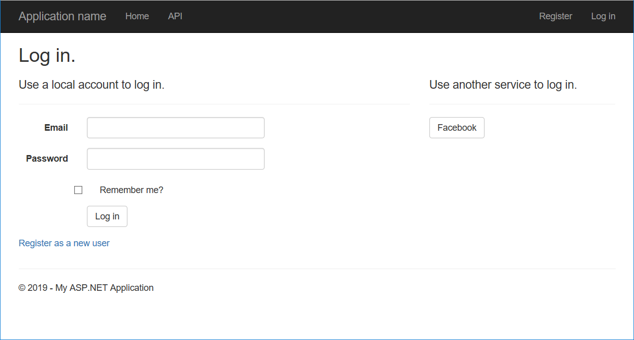 このチュートリアルの例では、Visual Studio 2017 に付属する新しい ASP.NET Web アプリケーション テンプレートを使用して、サポートされている各外部認証サービスを構成する方法を示します。
