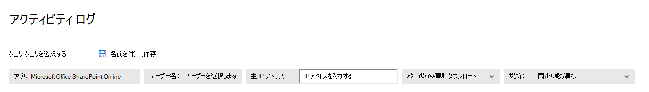 アクティビティ ログをフィルター処理して、特定のアクティビティを見つけることができます。 アクティビティに基づいてポリシーを作成し、アラートの対象を定義し、対処します。 特定のファイルで実行されたアクティビティを検索できます。 アクティビティの種類と各アクティビティに対して取得する情報は、アプリとアプリが提供できるデータの種類によって異なります。