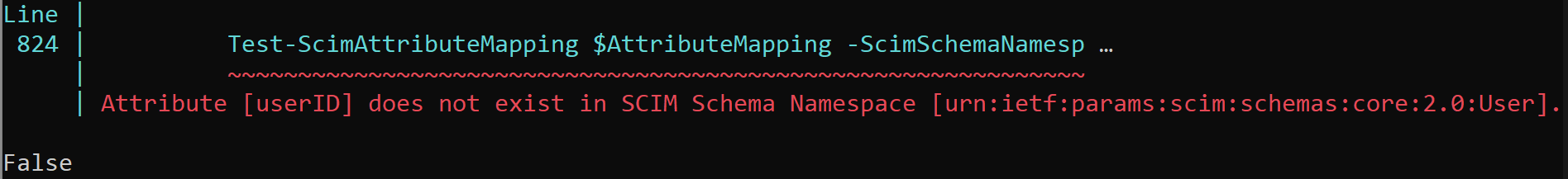 AttributeMappingファイルに有効な SCIM スキーマ属性があるかどうかを検証します。 検証が成功した場合、このコマンドは True を 返します。.\CSV2SCIM.ps1 -Path '..\Samples\csv-with-2-records.csv' -AttributeMapping $AttributeMapping -ValidateAttributeMappingSCIM コア ユーザー属性およびエンタープライズ ユーザー属性に加えて、カスタム SCIM スキーマ名前空間