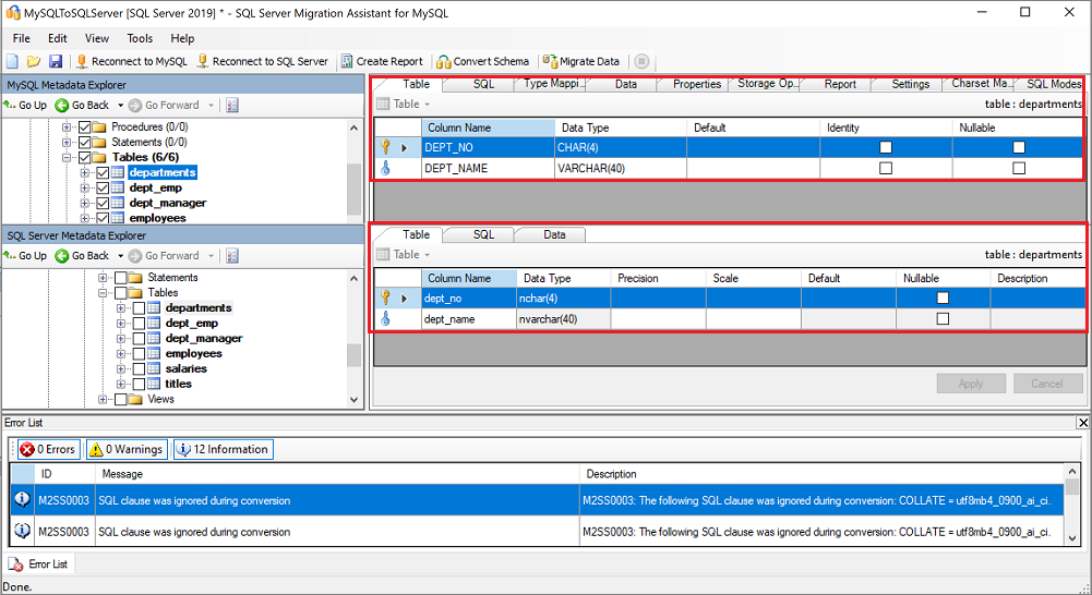 SSMA for MySQL を使用すると、データベース オブジェクトとデータを確認し、移行についてデータベースを評価できます。