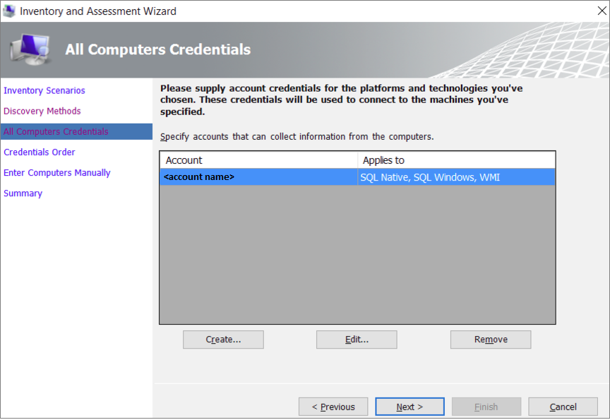 [インベントリ データの収集] を選択して、インベントリと評価ウィザードを開きます。