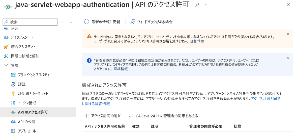 アプリの登録に Microsoft Graph のアクセス許可を追加する