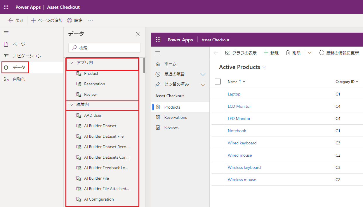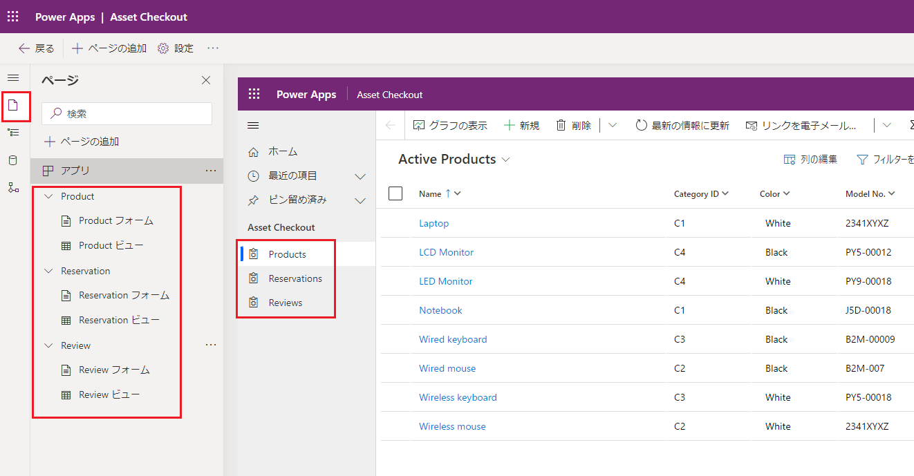 モデル駆動型アプリのページ