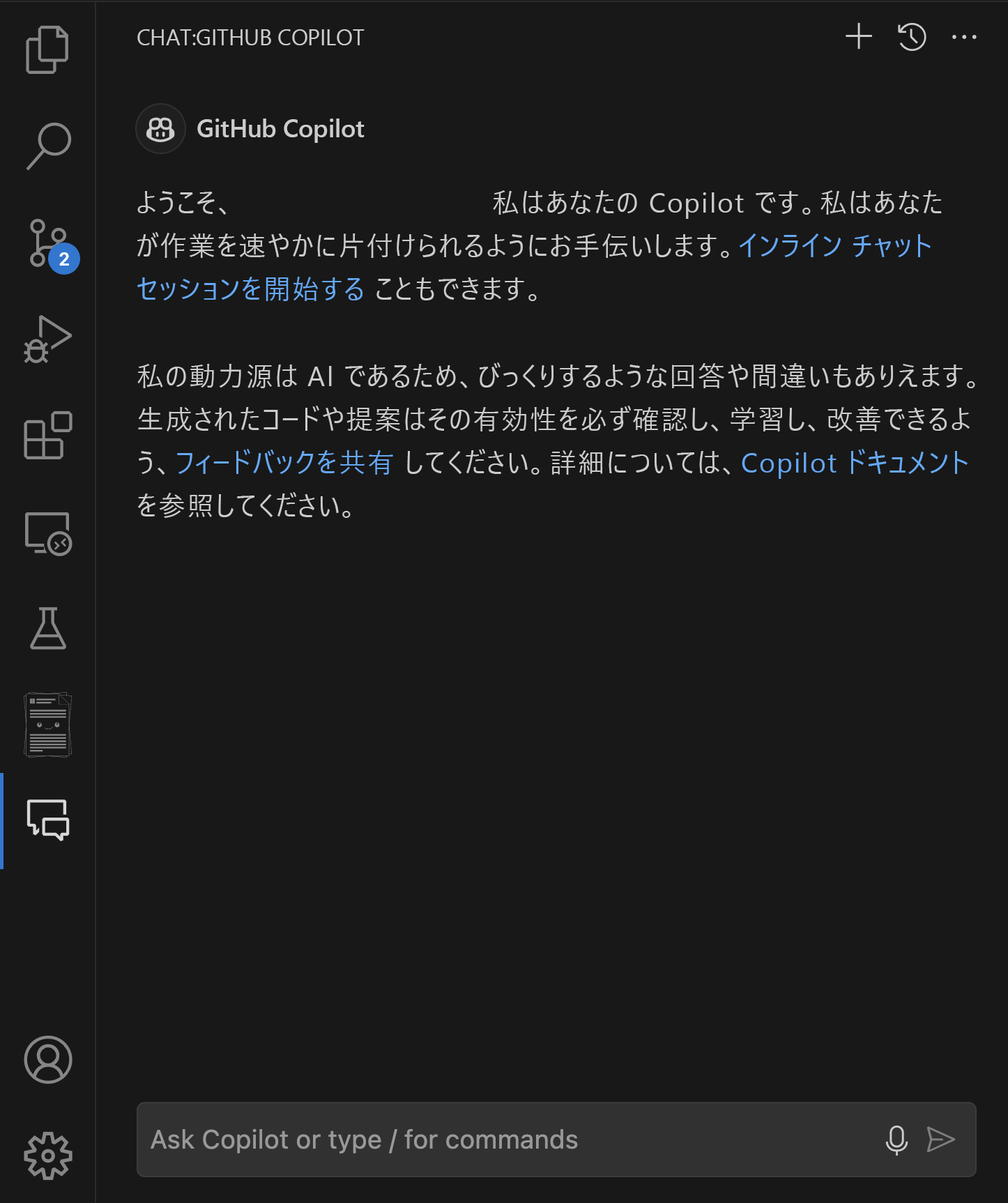 GitHub Copilot Chat に関するフィードバックの共有