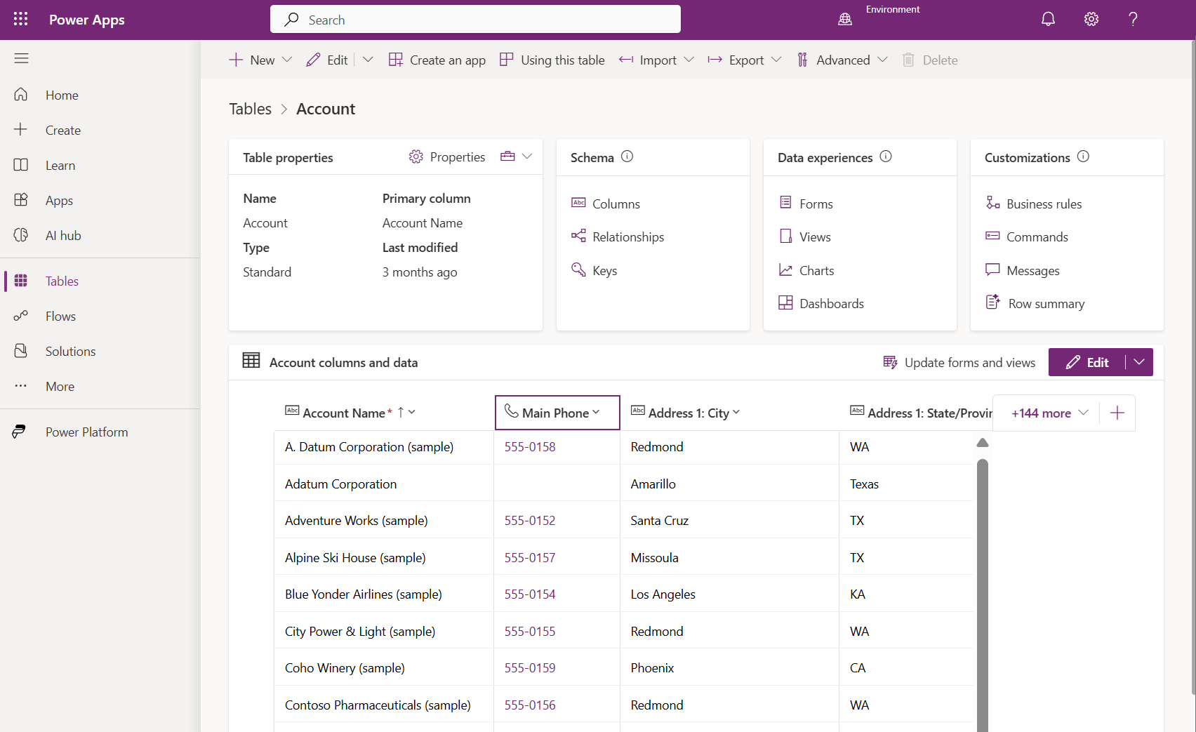 テーブルは、ビジネス データのモデル化および管理のために使用されます。 アプリを開発する場合は、標準テーブル、カスタム テーブル、またはその両方を使用できます。 Dataverse は、既定で標準テーブルを提供します。 これらのテーブルはベスト プラクティスに従って設計されており、組織内で最も一般的な概念とシナリオを取り込むためのものです。 Microsoft Dataverse には、テーブル内のデータの表示に関するオプションが複数用意されています。