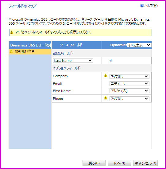 データ インポート ウィザードでは、単純な列間のマッピングがサポートされており、選択値のマッピングやルックアップ列のマッピングも処理されます。