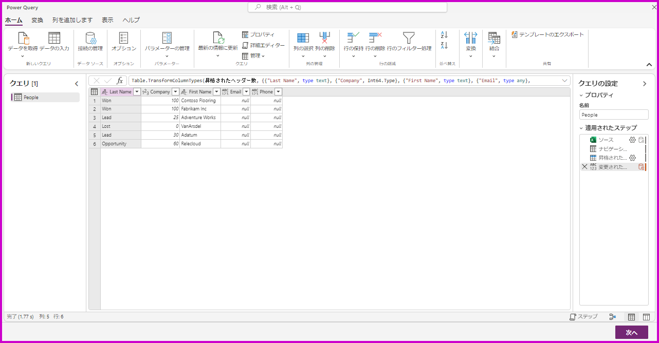 Power Apps Maker Portal の [データをインポート] では、PowerQuery を使用して抽出、変換、および読み込み処理を実行します。