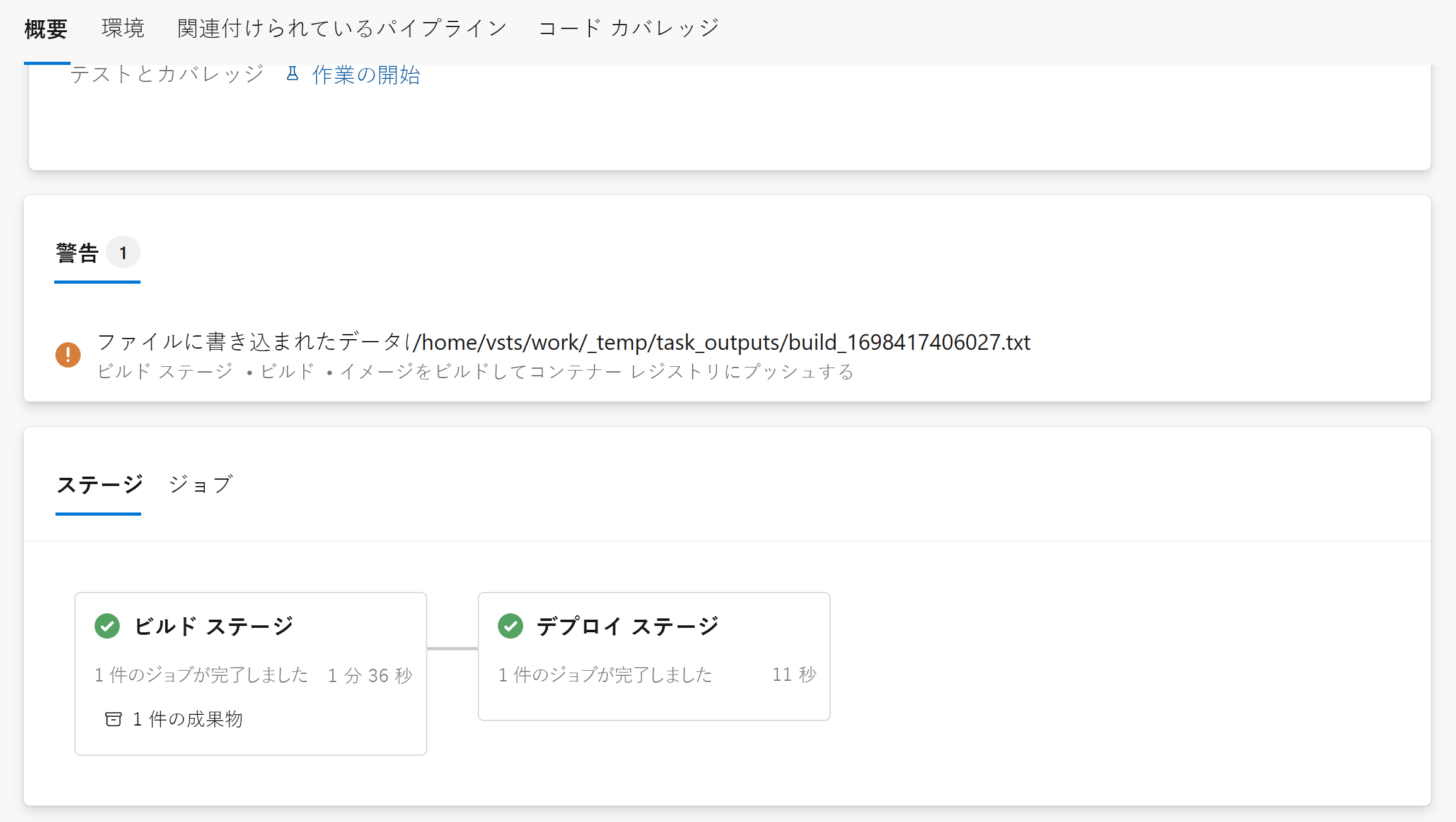 パイプラインが正常に完了しました。 [デプロイ] ステージを選択して、手順を表示します。