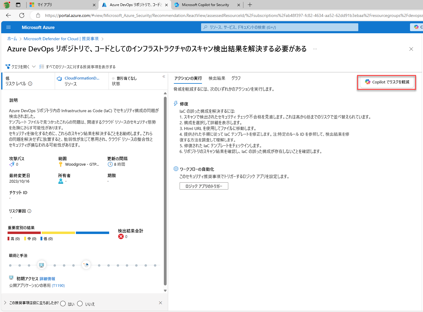Defender for Cloud で Copilot を使用して推奨事項の修復プロセスを支援するには: