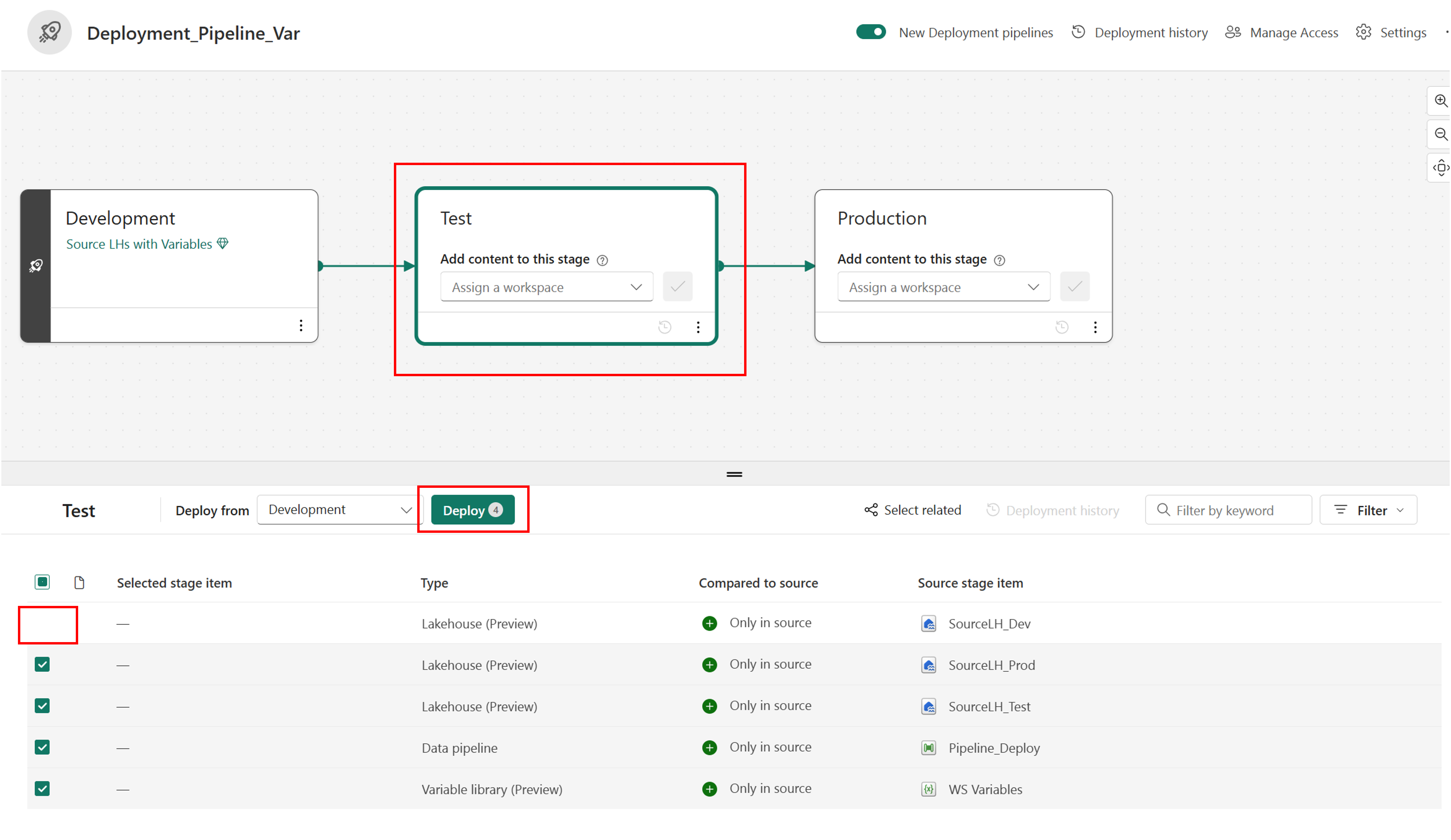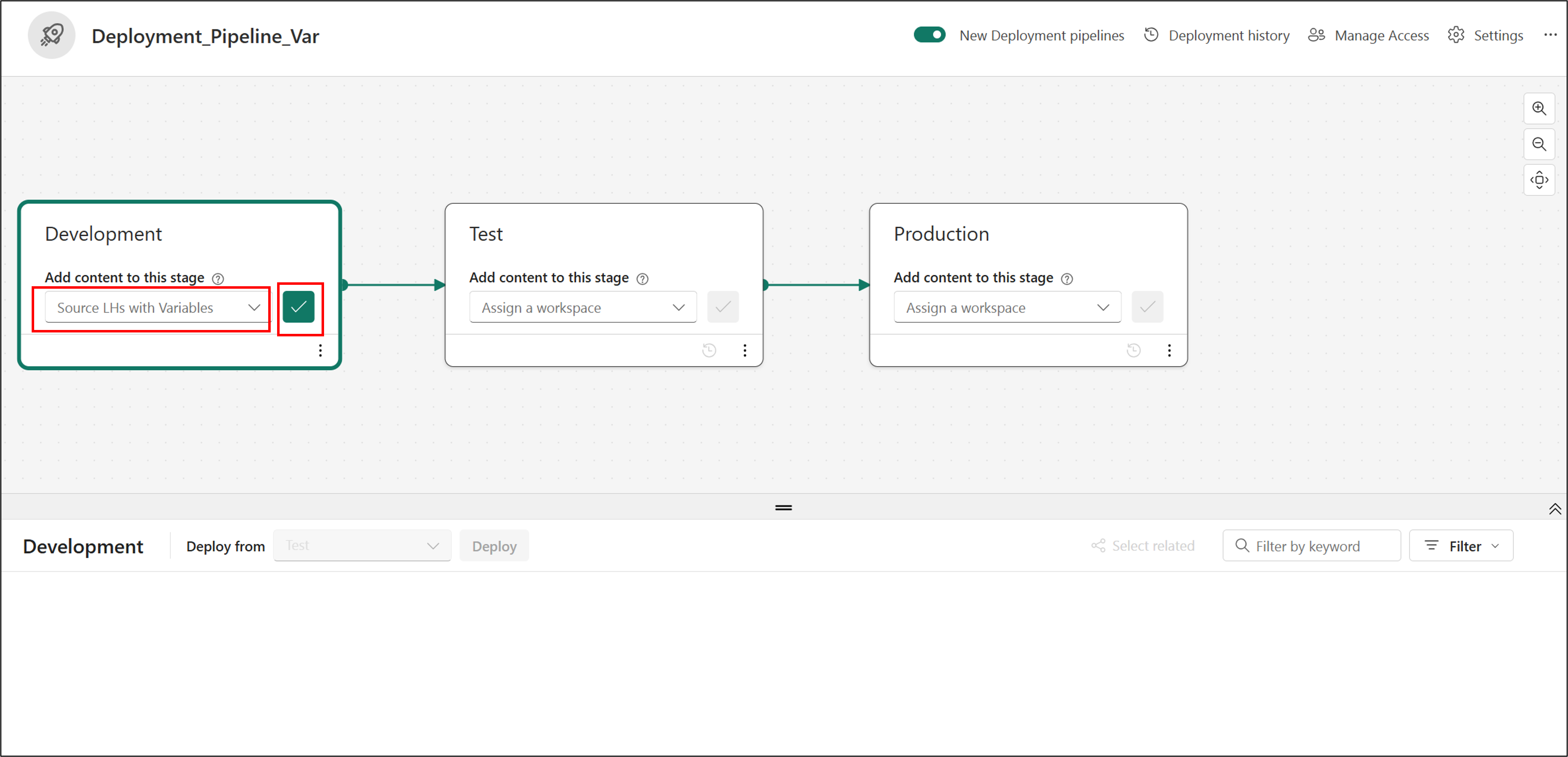 I arbeidsområdet Kilde-LH-er med variabler går du til Pipeline_Deploy.