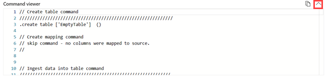 - Hvis du vil se en skrivebeskyttet visning av kommandoene som skal kjøres for å opprette tabellen, kan du åpne kommandovisningsprogrammet.