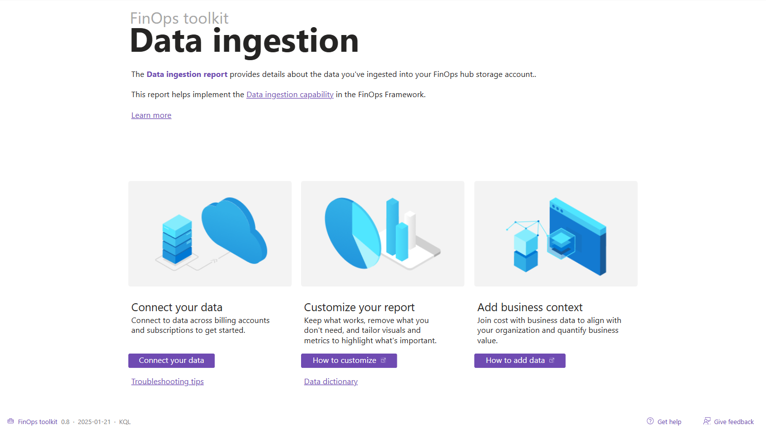 Para obter instruções sobre como implantar hubs FinOps, confira a visão geral dos hubs do FinOps.
