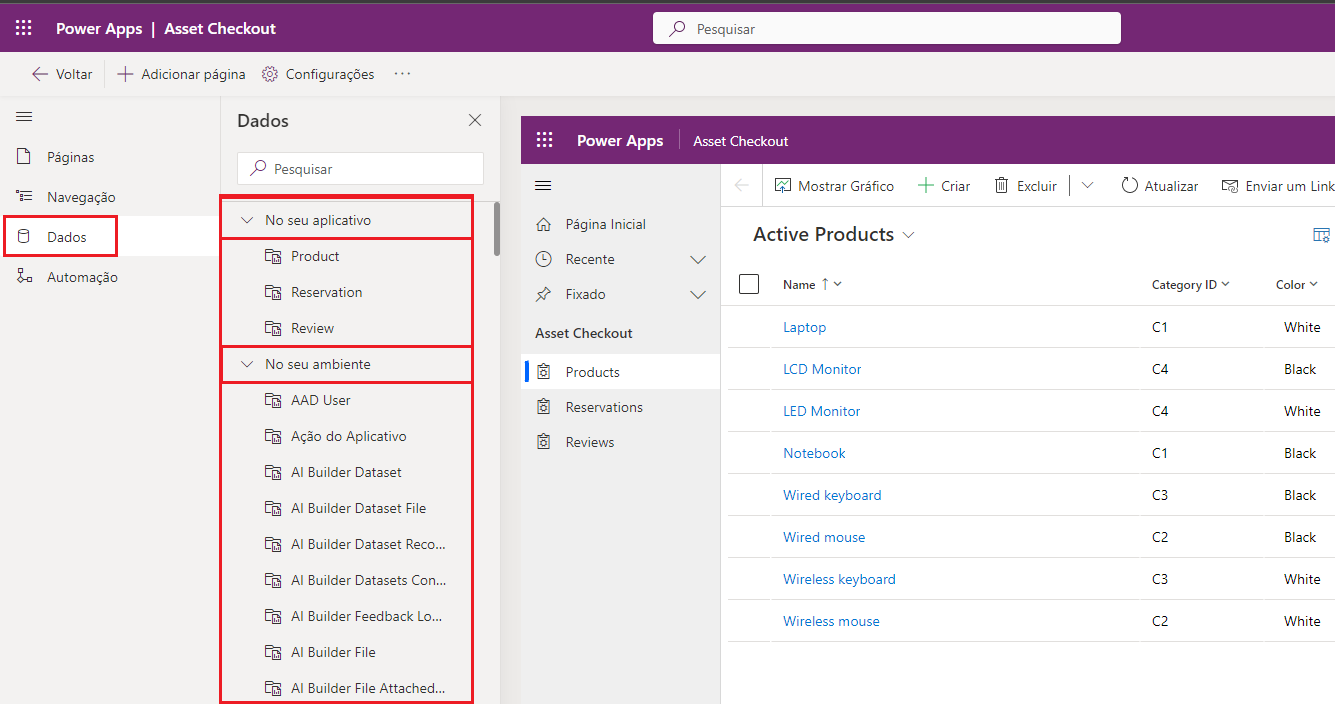 O design de um aplicativo baseado em modelo é composto de páginas, dados e automação. As páginas incluem os pontos de navegação do aplicativo ou as telas para as quais os usuários podem navegar. Os dados incluem todas as tabelas do Dataverse que fazem parte do aplicativo e a capacidade de adicionar outras tabelas do ambiente. A automação inclui todos os fluxos do processo empresarial que fazem parte do aplicativo e a capacidade de criar novos processos.