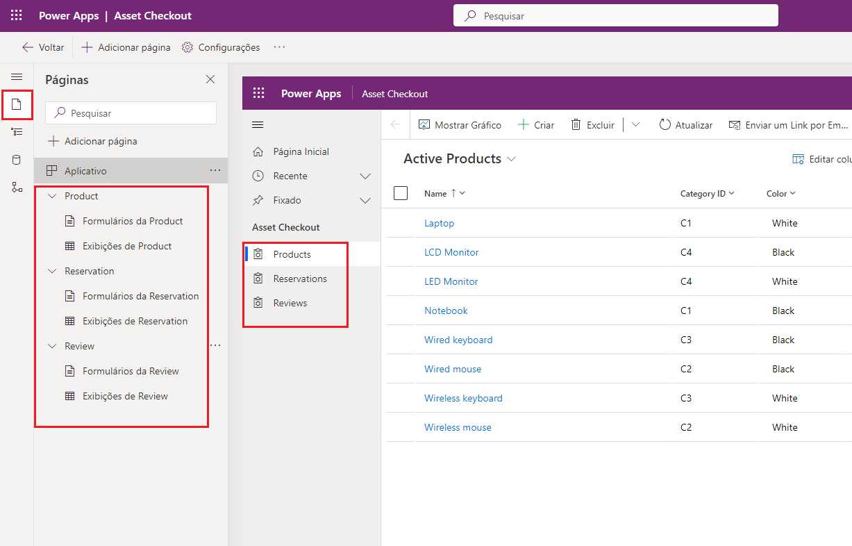 Ao contrário dos aplicativos de tela, em que você compila um aplicativo tela por tela, adicionando lógica e código conforme avança, os aplicativos baseados em modelo podem ser criados com algumas etapas simples. Os aplicativos baseados em modelo usam uma abordagem focada em componentes para desenvolver o aplicativo. Ao desenvolver aplicativos de tela, você tem controle total sobre a aparência e o comportamento do aplicativo; por outro lado, com aplicativos baseados em modelo, o layout é feito para você, com base nos componentes que você adiciona ao aplicativo. À medida que você seleciona exibições e formulários em suas tabelas, eles são refletidos instantaneamente na exibição, permitindo que você veja exatamente como o aplicativo será exibido para os usuários. É uma experiência de criação WYSIWYG.
