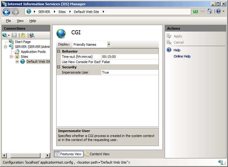 No painel CGI, defina as configurações necessárias e clique em Aplicar no painel Ações.