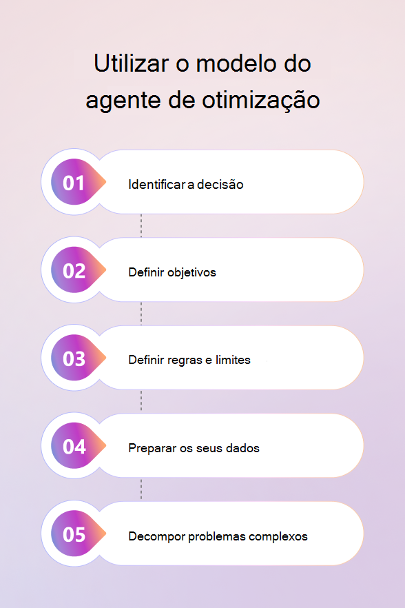 Utilize o modelo do Agente de otimização quando precisar de determinar a melhor decisão possível sob restrições. Comece por identificar a decisão que pretende otimizar.