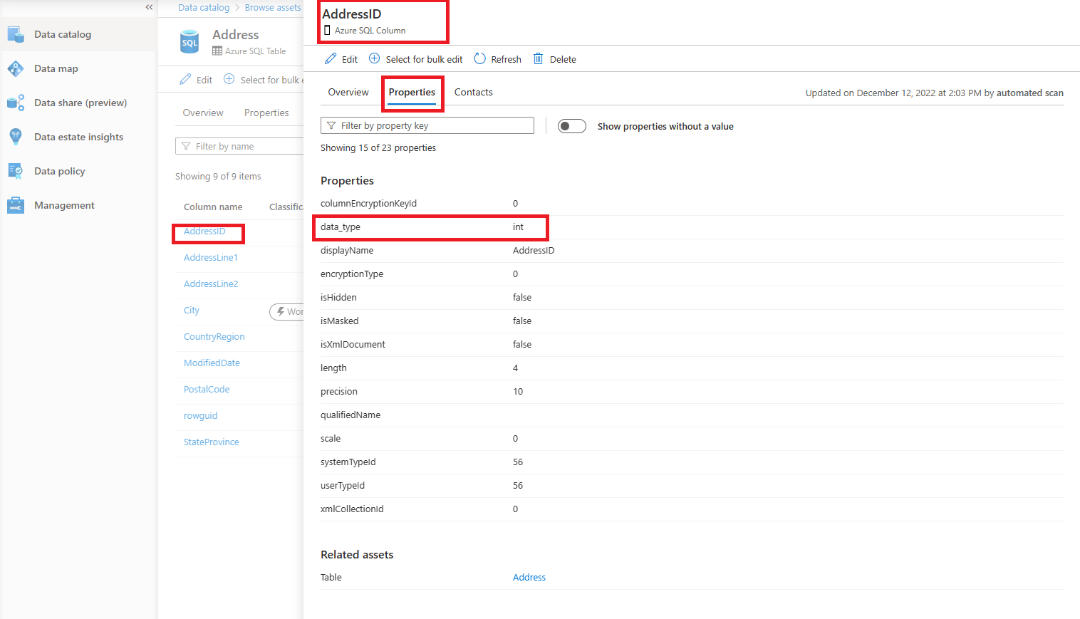 Para a definição completa, pode fazer um GET pedido para o seguinte ponto final com azure_sql_table_columns como o nome:
