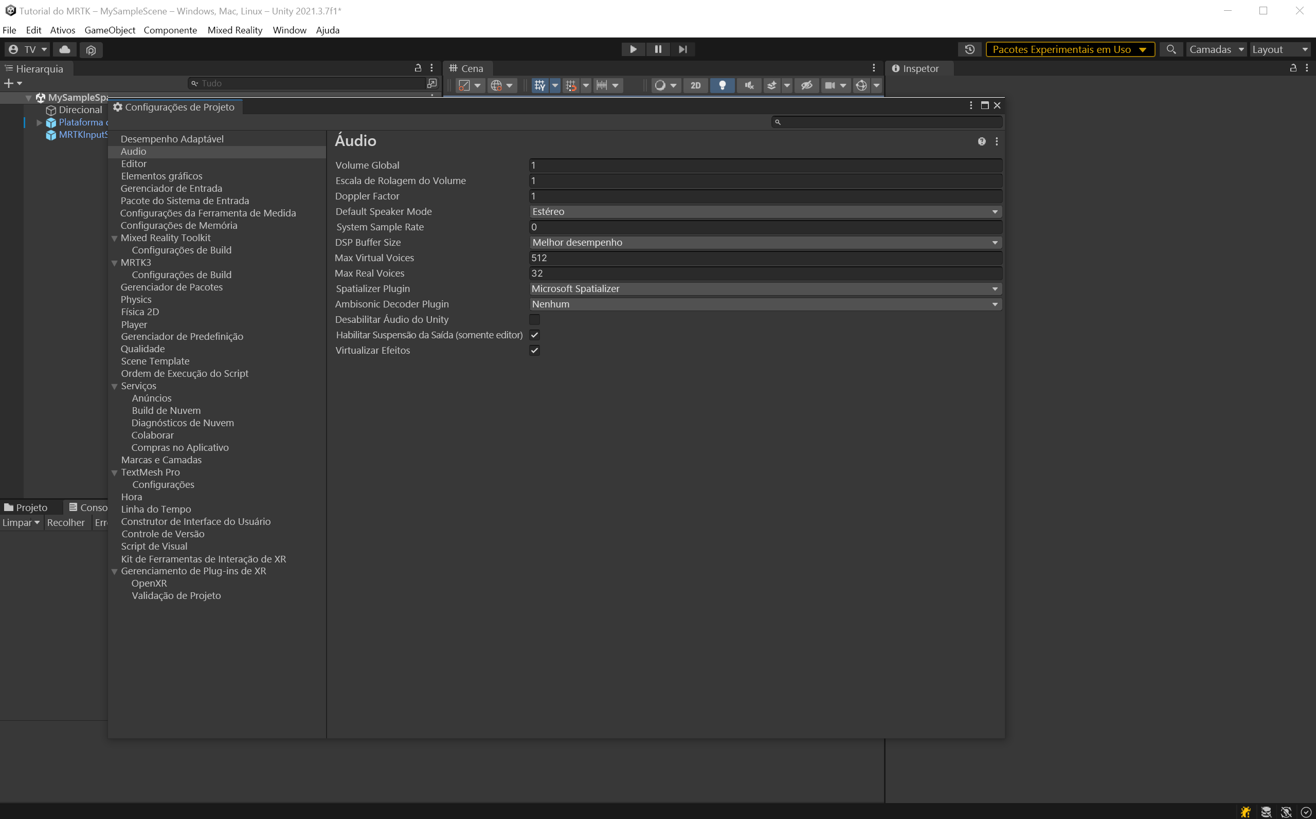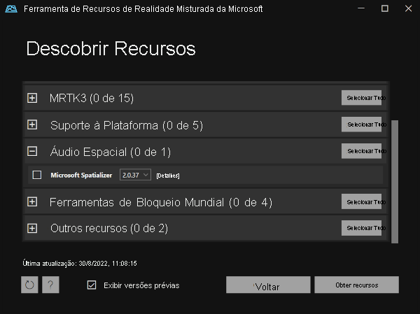 Adicione o pacote spatializer através da ferramenta de recursos de Realidade Mista.